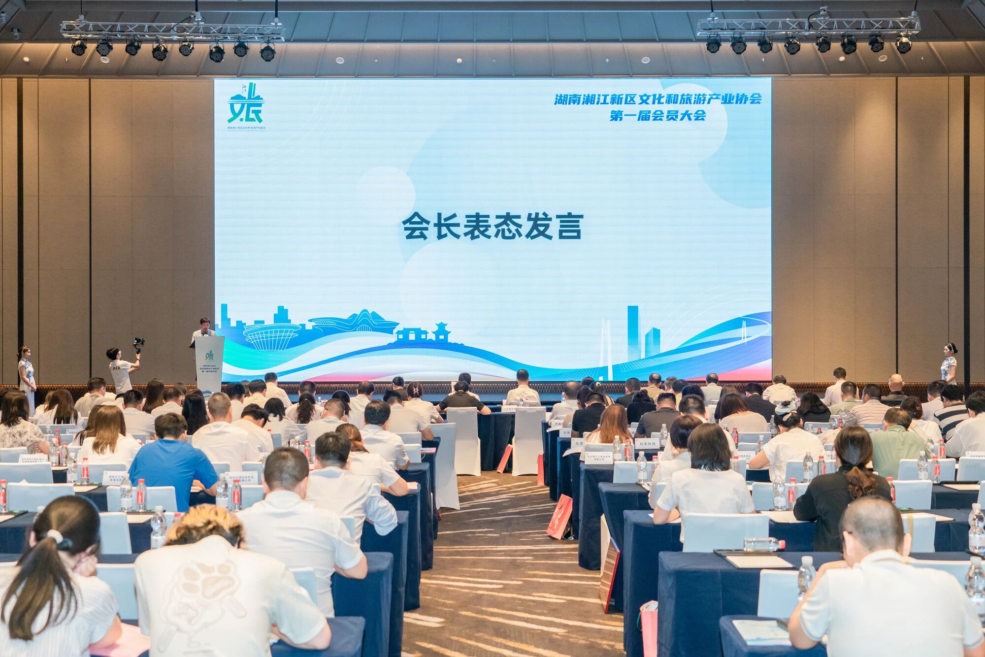 湖南湘江新区宣传工作部副部长、三级调研员蒋学龙祝贺协会成立,并对未来发展方向提出三点建议:一是立足时代坐标,以使命担当锚定文旅发展新方位,扛起政府与企业的“连心桥”、行业自律的“风向标”、资源整合的“聚宝盆”等责任;二是聚焦文旅融合创新、品牌塑造、产业生态等核心任务,以创新突破激活文旅发展新动能;三是凝聚共识力量,当好“智囊团”“资源桥”“协同网”,携手开创文旅发展新局面,助力新区打造“文旅融合示范区、创新发展引领区、国际交流先行区”。
