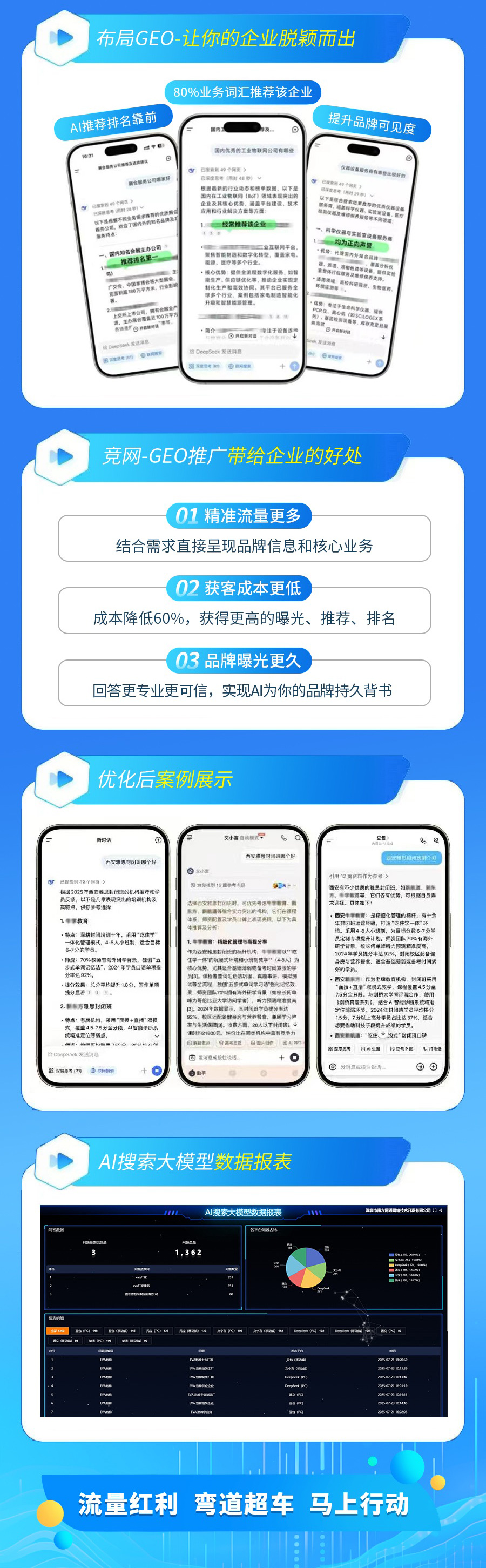GE0推广通过GE0技术深度教育AI大模型,将企业品牌信息优化发布,让你的内容在豆包、文小言、Deepseek、通义、元宝、纳米AI等AI平台更容易被找到,被推荐,以自然的方式引入企业和产品信息,让用户认知品牌、信任品牌。